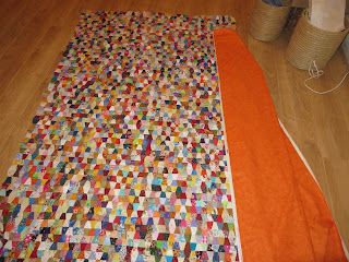 En tot slot, na het beeindigen van de rood/witte ananas was dit de enigste quilt die nog op de quiltstoel lag. Ooit een paar steekjes aan gequilt, maar nooit afgemaakt. Zou leuk zijn al deze met de pasen kon hangen. Denk wel dat ik de vorige keer gemaakte quiltsteekjes eruit haal, m'n hand van quilten is toch wel erg veranderd.